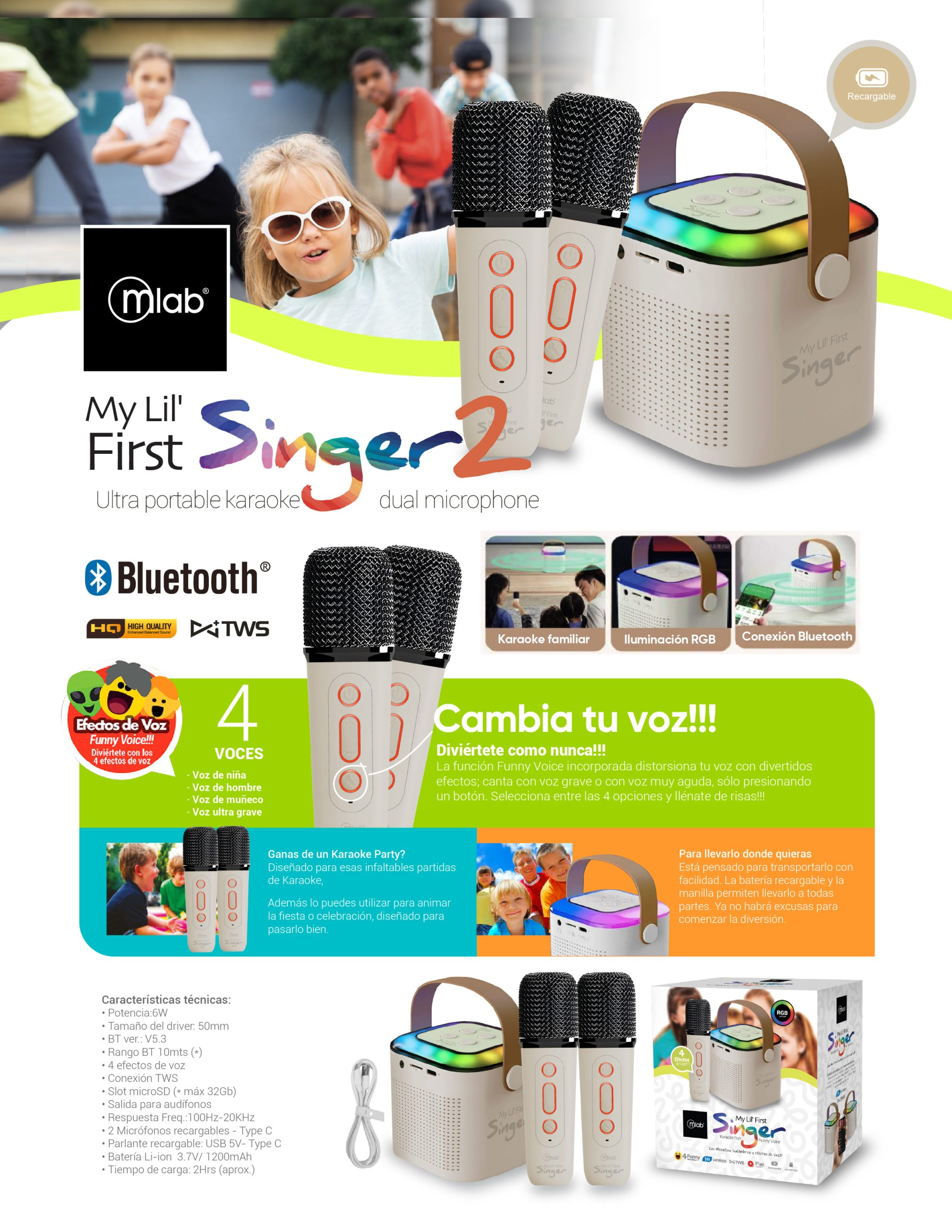 MLAB KARAOKE MY LIL FIRST SINGER 2 CON LUZ RGB 2 MIC. INAL.