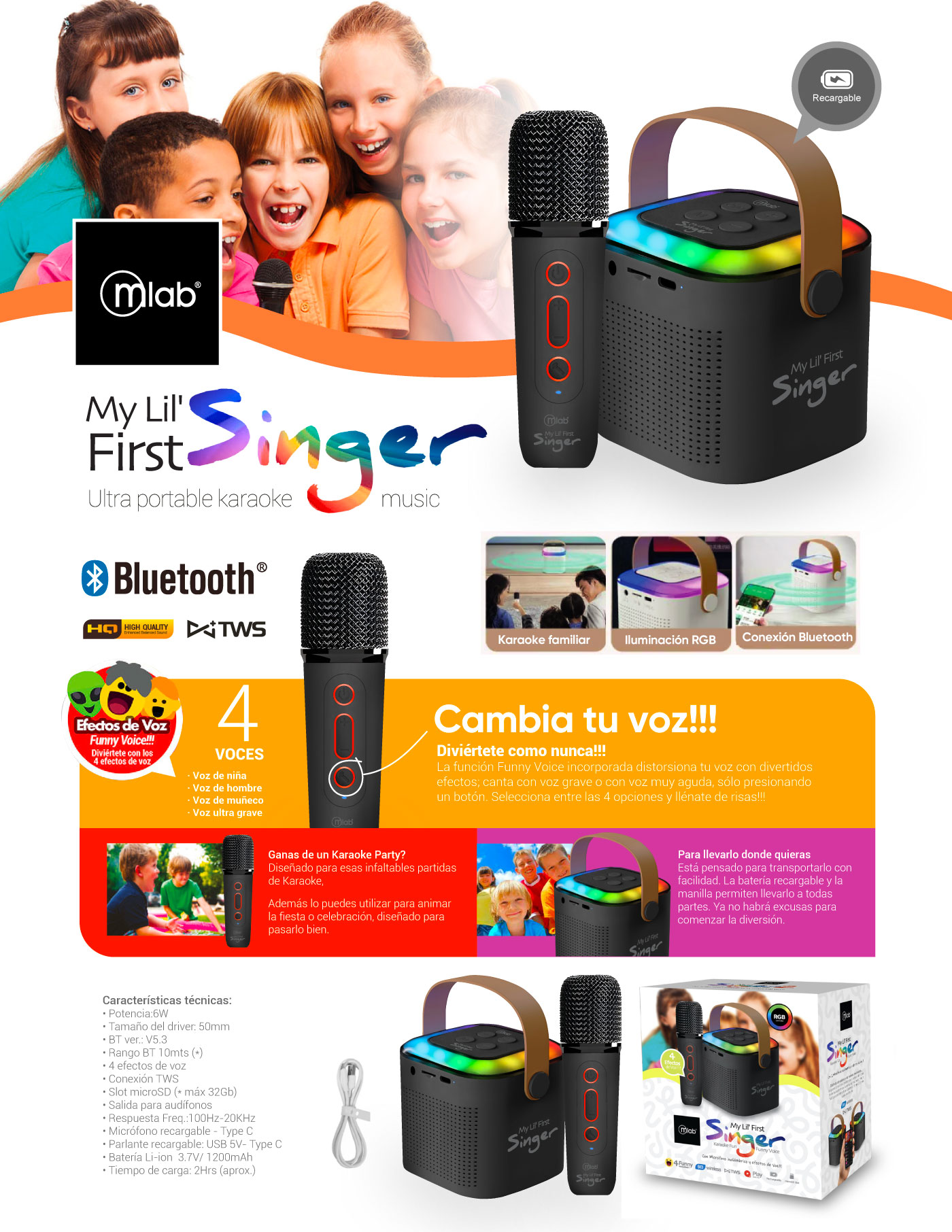 Perfecto para fiestas, karaoke o simplemente estimular la creatividad. ¡Es más que un parlante, es pura magia para tus pequeños artistas!