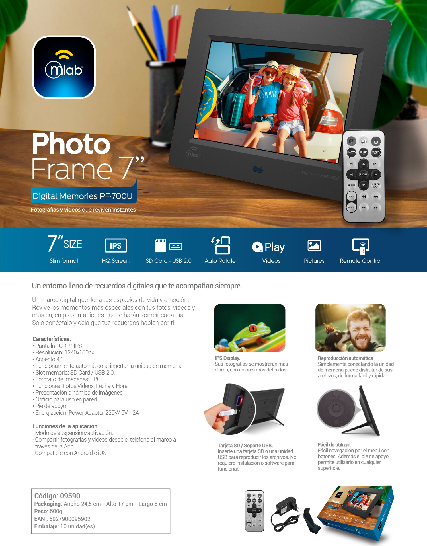 Un marco digital que llena tus espacios de vida y emoción. Revive los momentos más especiales con tus fotos, videos y música, en presentaciones que te harán sonreír cada día. Solo conéctalo y deja que tus recuerdos hablen por ti.