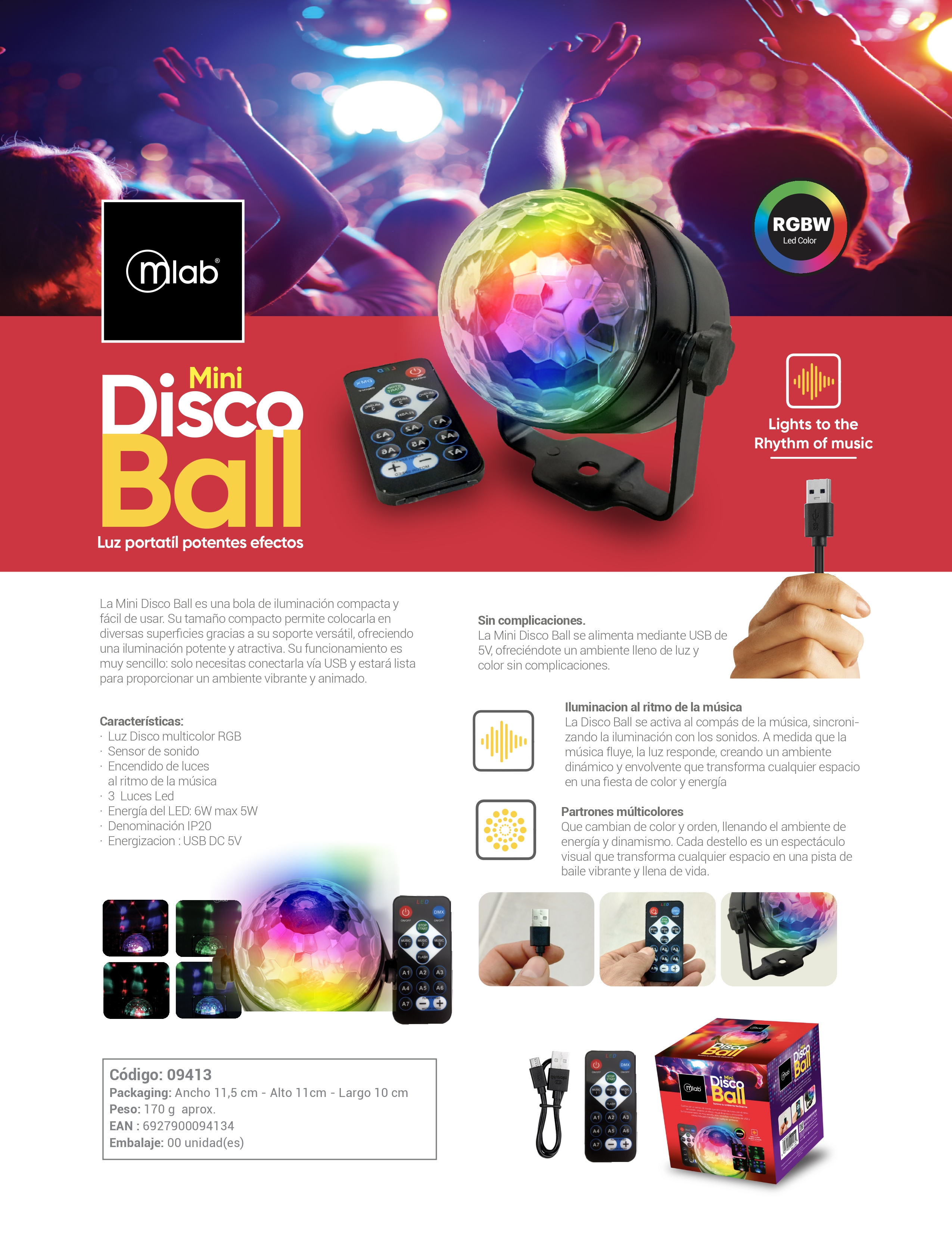 La Mini Disco Ball es una bola de iluminación compacta y