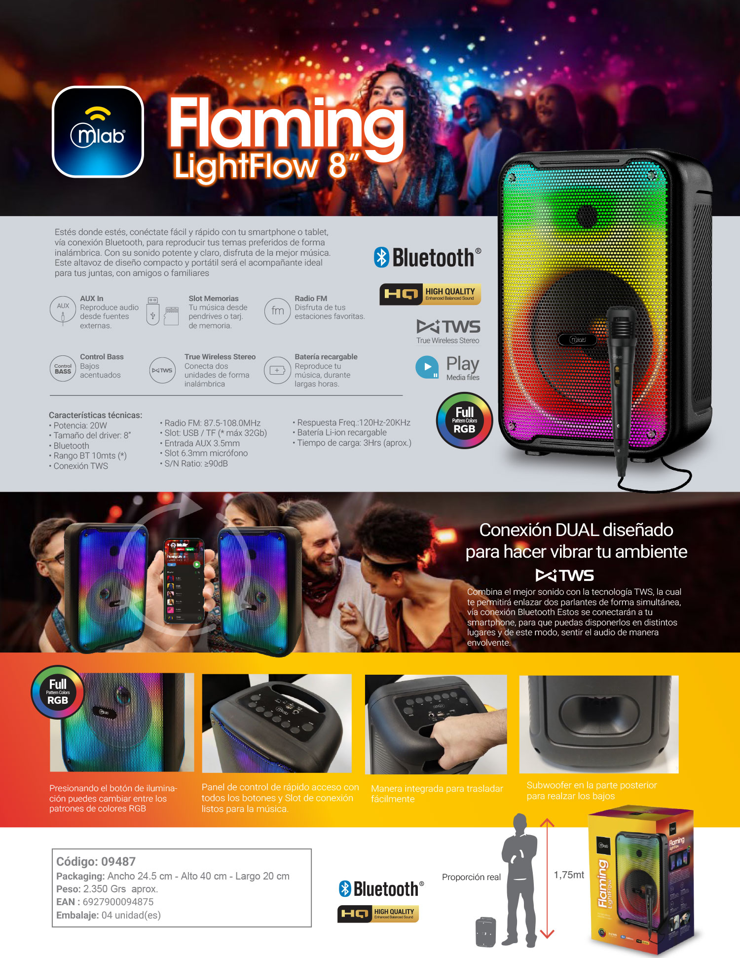 MLAB PARLANTE FLAMING LIGHTFLOW 8" MICROFONO CABLE 9487