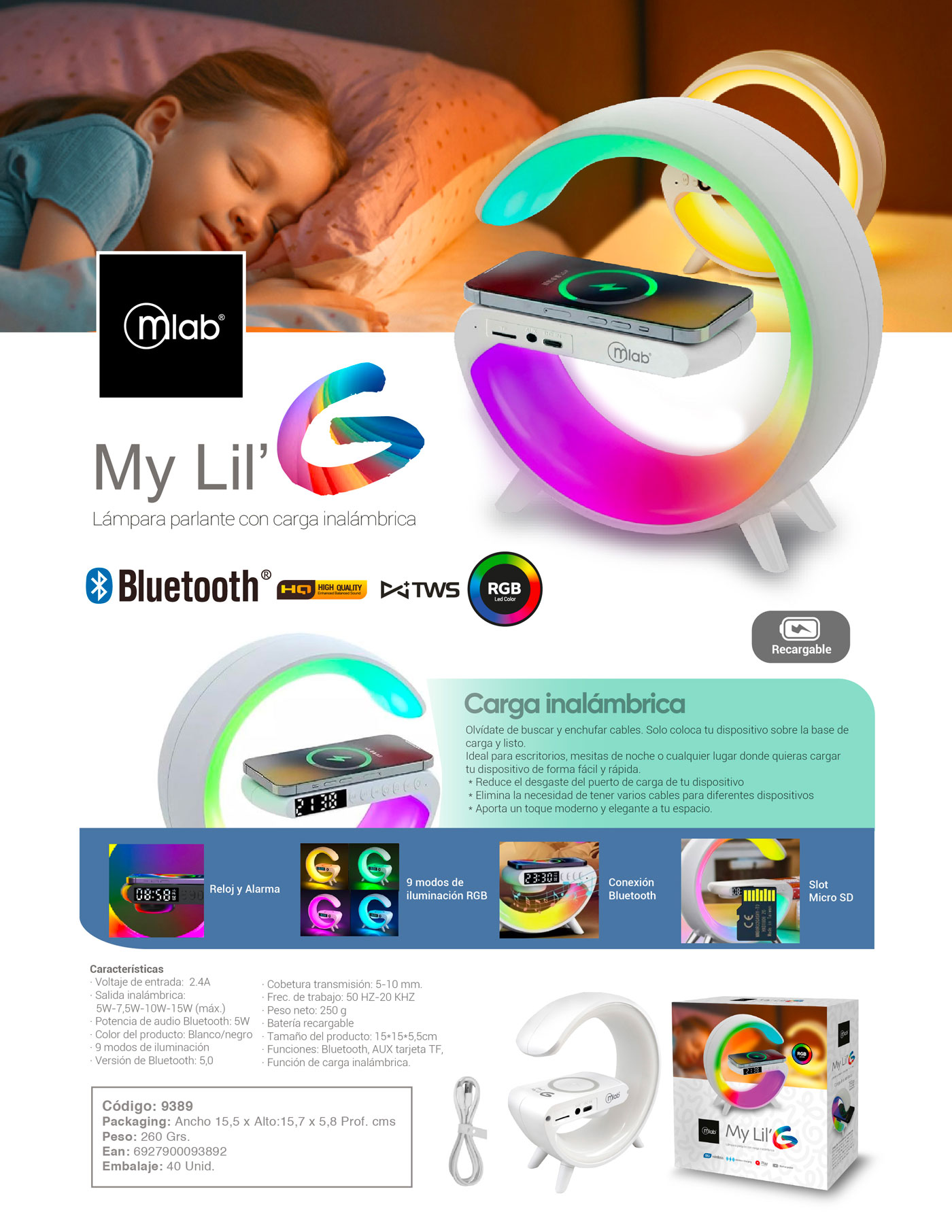 MLAB PARLANTE MY LIL G 5 IN 1 CARG. INAL.+LUZ RGB+RELOJ+ALARMA