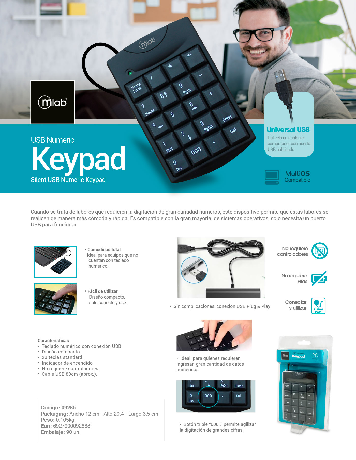 Cuando se trata de labores que requieren la digitación de gran cantidad números, este dispositivo permite que estas labores se realicen de manera más cómoda y rápida. Es compatible con la gran mayoría de sistemas operativos, solo necesita un puerto USB para funcionar.
