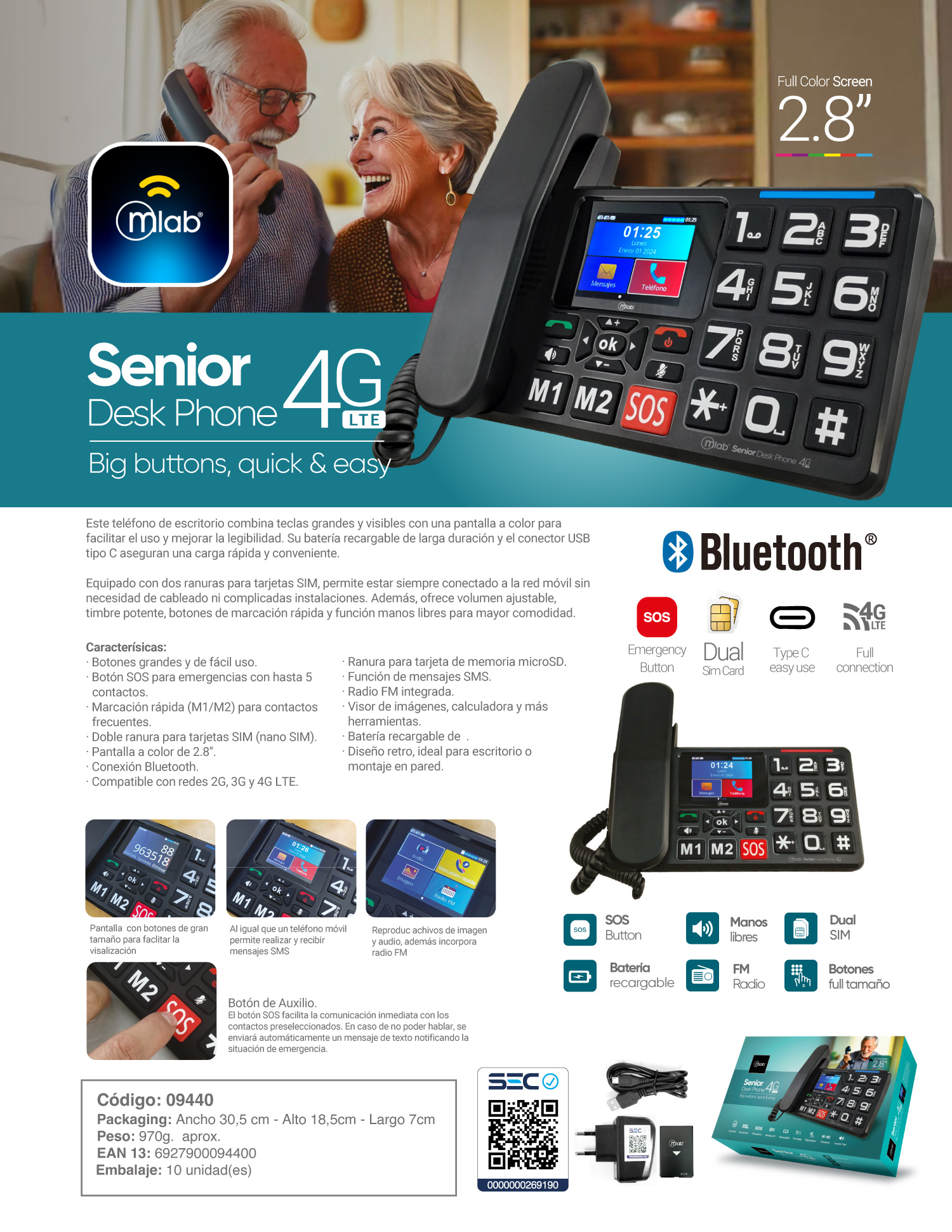 MLAB TELEFONO SENIOR DESKTOP 4G SOS 2,8" 9440