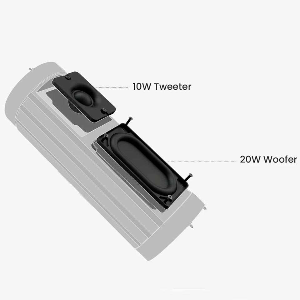 Disfruta de un sonido potente y nítido de 20W que llena cualquier espacio con tu música favorita. Gracias a su conectividad Bluetooth 5.3, la conexión es rápida y estable, permitiéndote reproducir sin interrupciones. Además, puedes elegir entre dos modos de reproducción: Mono o TWS (True Wireless Stereo), para emparejar dos parlantes y obtener una experiencia de sonido estéreo inmersiva. Elige el modo de ecualización que mejor se adapte a tu música, ya sea General o Bass Boost, para unos bajos más profundos.